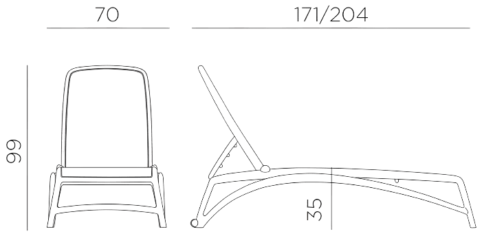 Ležaljka Atlantico linearnog dizajna i ergonomskog oblika s naslonom za leđa podesivim u četiri položaja. Pružit će udobnost uživanja na plaži ili uz bazen.