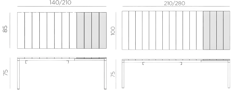 Stol na razvlačenje Rio ALU čiji je dizajn inspiriran letvicama, a ukrašen je jednostavnim prugastim uzorkom. Dostupan je u dvije veličine kako bi se mogao što bolje uklopiti u svaki vanjski prostor