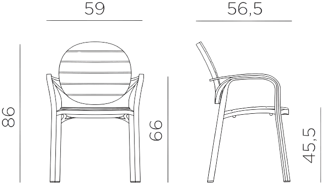 Stolica Palma s rukonaslonima čijem suvremenom izgledu pridonose velike letvice na naslonu i sjedištu. Odlično će se uklopiti u svaki vanjski prostor.